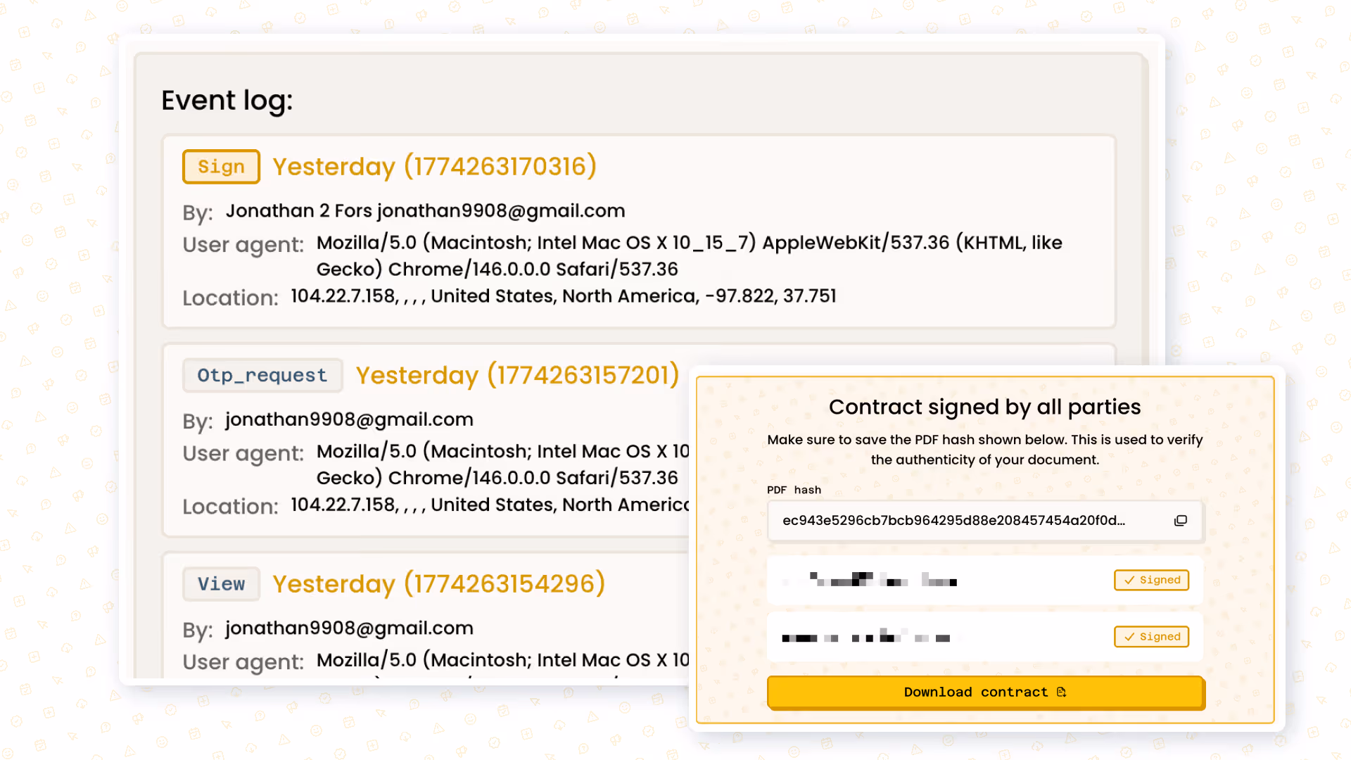 Look professional with tamper-proof contracts, all legally binding within the ESIGN and eIDAS legal frameworks.