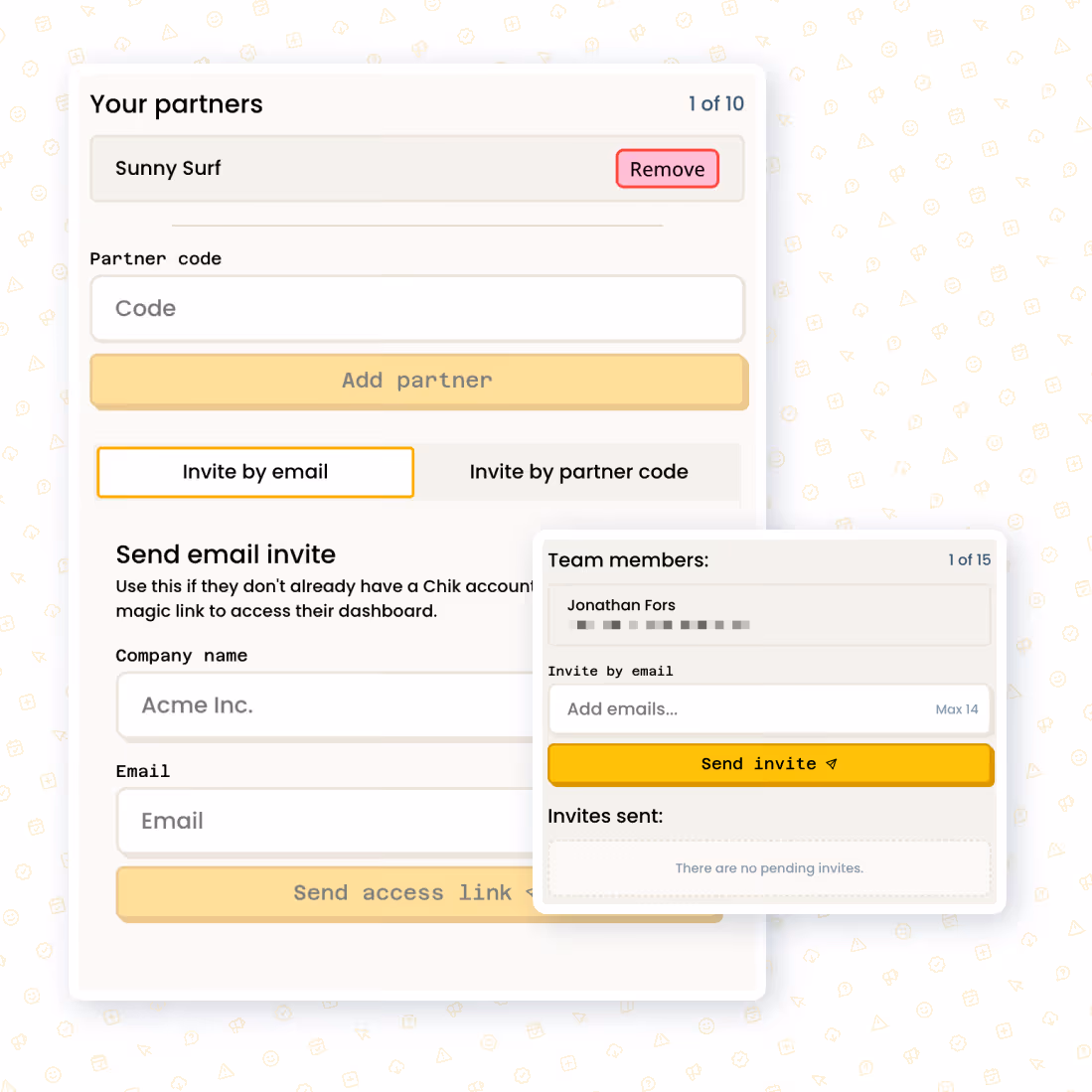 With Chik's Partner Mode, your clients get a clean, focused view of their project — tasks, status, files, and communication — all in one place. No account needed. They just click the link you send them.